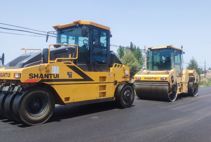 其中山推產(chǎn)品施工內(nèi)容包括:攤鋪機進行一次性面層鋪設(shè),鋪設(shè)寬度8-8.5m;鋪設(shè)后先雙鋼輪振動壓實,后膠輪壓路機靜碾揉搓表面壓實,施工遍數(shù)兩次。施工后進行壓實度、平面度測量,達到施工標(biāo)準(zhǔn)要求。