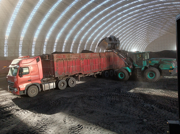該樞紐距蒙古國納林蘇海煤礦僅100公里,4座原煤棚、1座配煤棚及多座專用煤棚構(gòu)成了立體化能源中轉(zhuǎn)網(wǎng)絡(luò)。每天海量進口煤炭經(jīng)吊卸、堆存后發(fā)往國內(nèi)各地,高強度的作業(yè)節(jié)奏,對裝卸設(shè)備的效率與連續(xù)工況適應(yīng)性提出了極致要求。2023年項目啟動之初,各類工程裝備陸續(xù)集結(jié),隨著作業(yè)量持續(xù)攀升,兼具強勁動力與節(jié)能優(yōu)勢的純電裝載機,逐漸成為破解效率瓶頸的剛需之選。